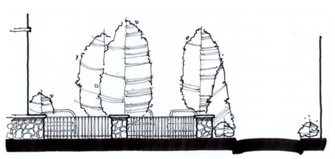 To provide greenery to visually soften paved areas and buildings;