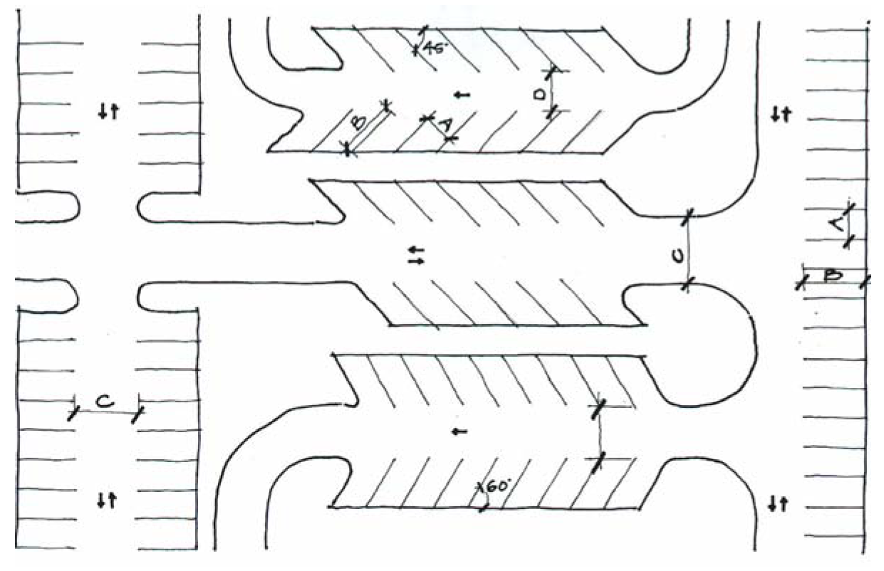 Size and circulation. Parking lot dimensions shall be as follows: