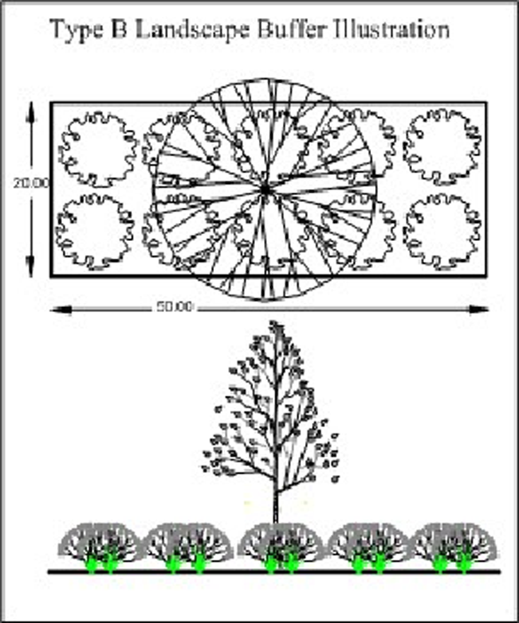 All other landscaping and buffers (other than street trees) required by this Land