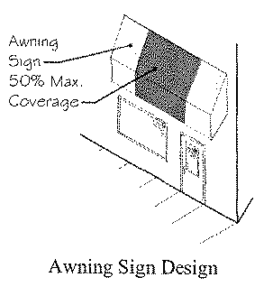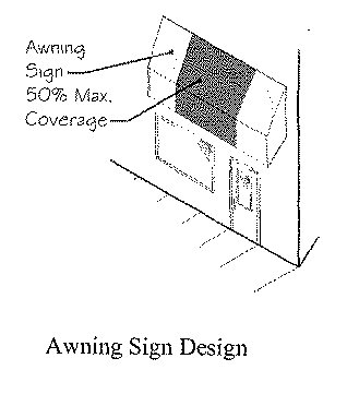 Awning signs. Signage placed on an awning or wall-mounted canopy is allowed, provided it does not extend more than four (4) feet above or one (1) foot below such structure, and is a minimum of (8) feet above the ground floor elevation of the building. Awning signage shall be counted as a part of the aggregate sign area allowed per frontage. Awning signage need not include raised or recessed lettering or borders.