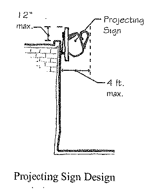 Projecting signs may not extend more than four (4) feet from the wall including supporting structure.