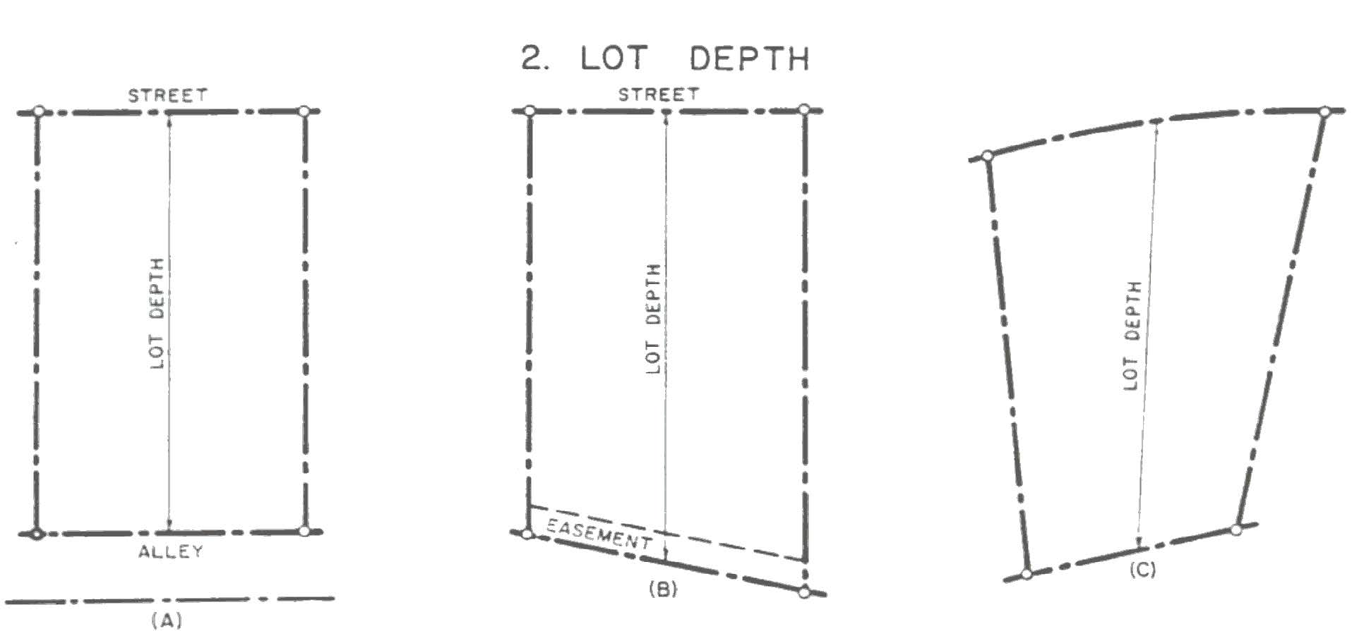 "Lot depth" means the horizontal distance between the front and rear lot lines.