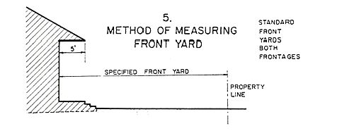 6. The area between the lot line and the minimum side yard line must be kept free and clear of accessory buildings and storage areas, but may be paved and used as driveways.
