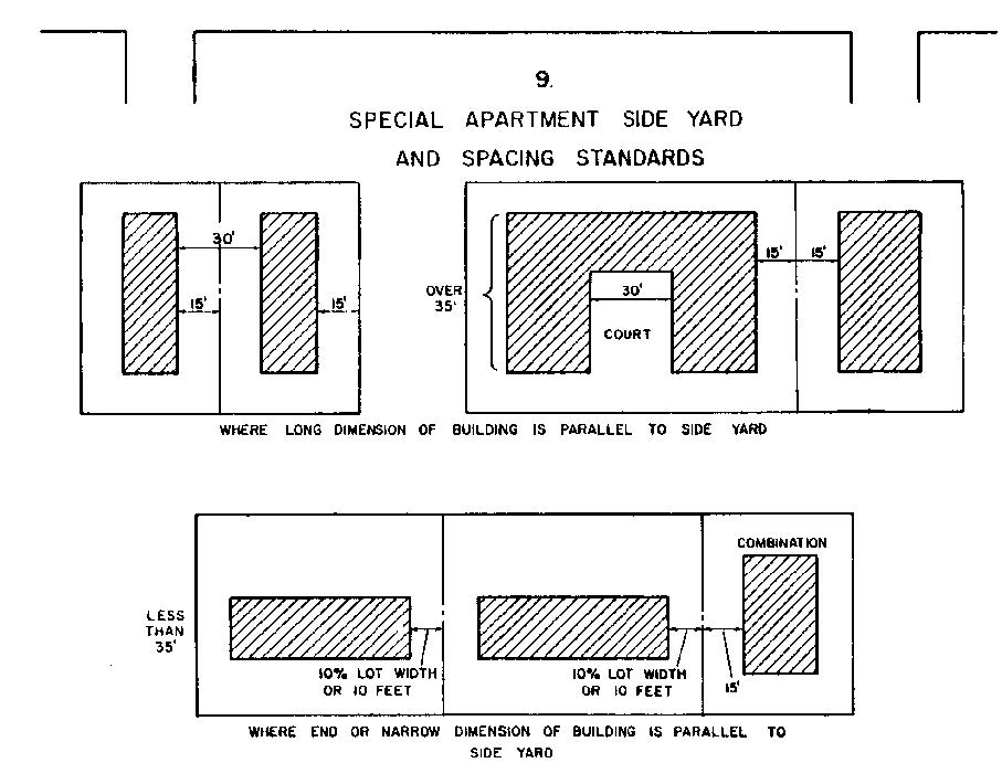 6. For side setback for apartment buildings over 2 stories, see Section 3.3I.2.b.