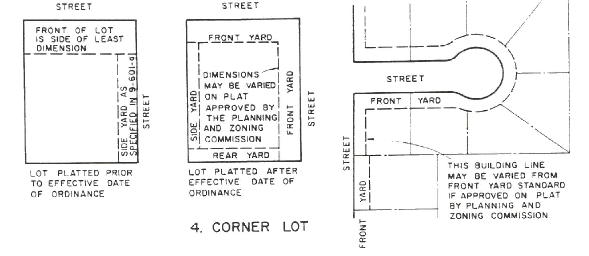 4. For setbacks for one or two family dwellings on corner lots, see Section 3.3I.2.c.