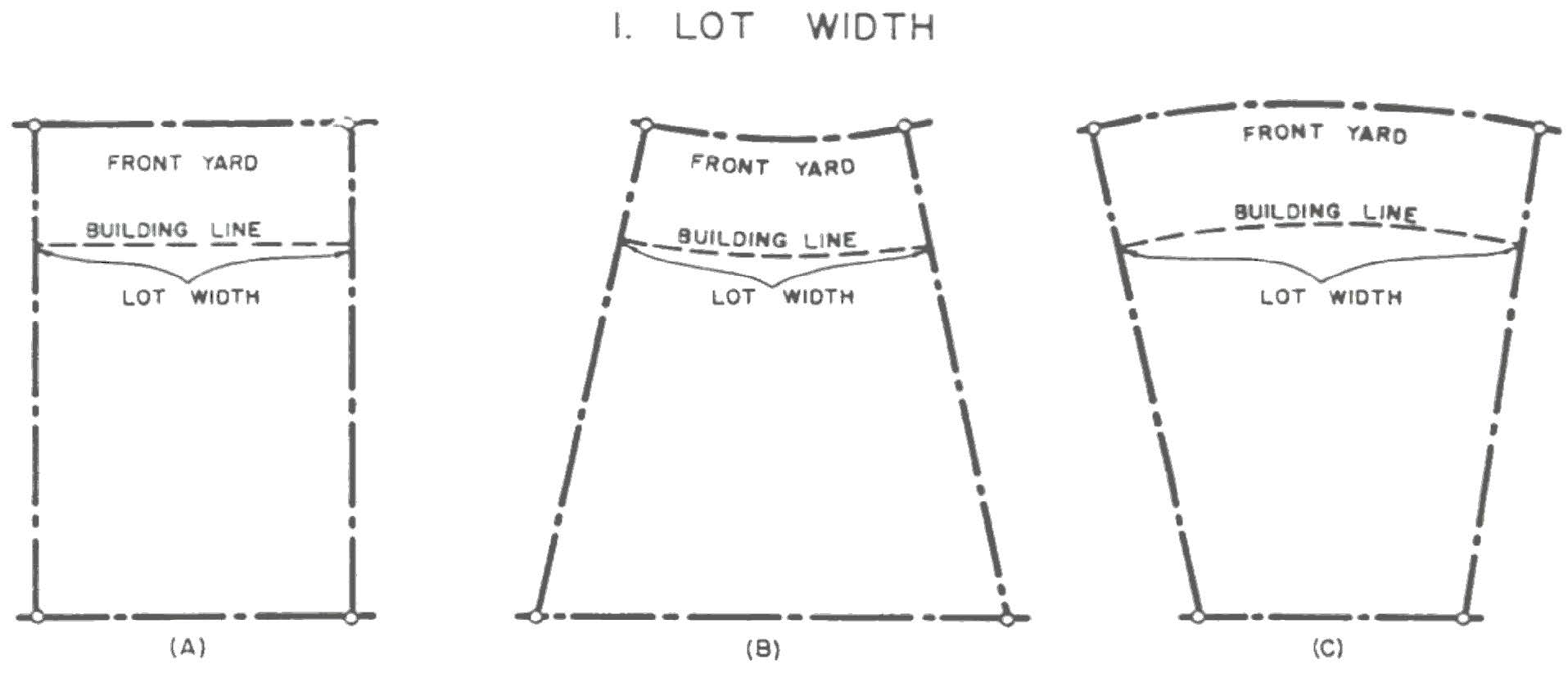 "Lot width" means the distance between the side property lines measured at the front building line.