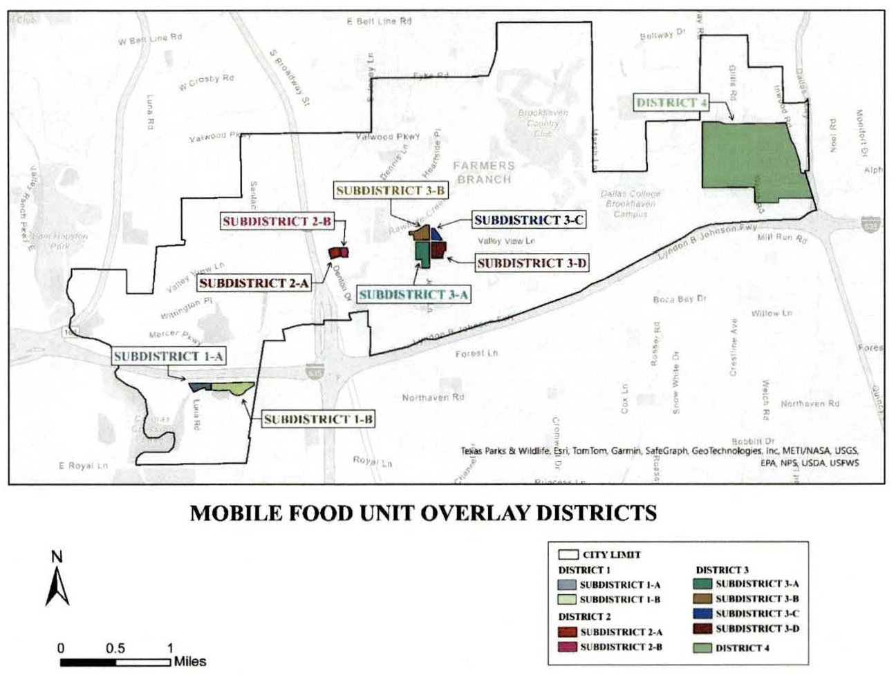 The primary goals of the Mobile Food Unit Overlay Districts are to designate specific locations that are best suited for the operation of mobile food units in an effort to facilitate successful operations of mobile food units and economic growth within such districts but also create a diverse social land use, fostering new economic opportunities in targeted areas of the city.