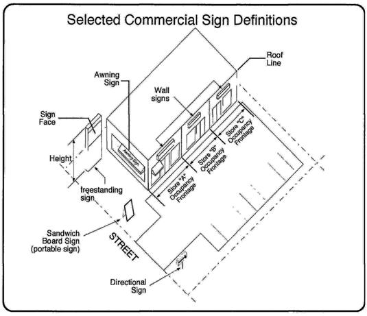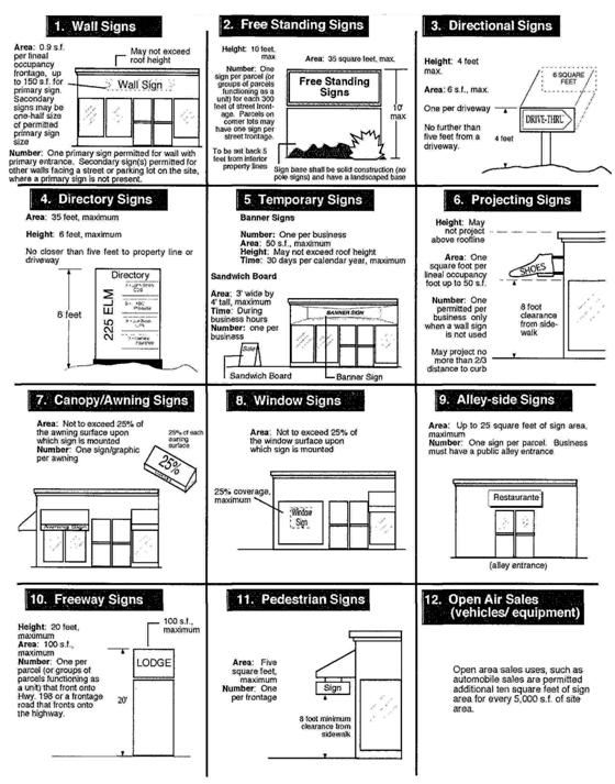 Commercial and Industrial Zone Districts (C-G, C-C, C-H, C-S, I). The following signs are permitted for each business in commercial and industrial districts (see also Exhibit 3 for graphic illustration of standards for various sign types). For multi-tenant shopping centers or office parks containing three or more individual uses, a coordinated sign program shall be submitted for review and approval by the planning director.