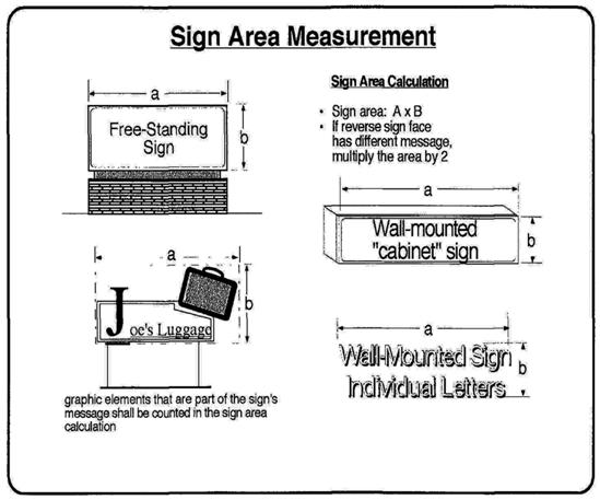 Wall-Mounted Letters. Where a sign is composed of letters individually mounted or painted on a building wall, without a border or decorative enclosure, the sign area is that of the smallest area of a rectangle within which all letters and words can be enclosed.