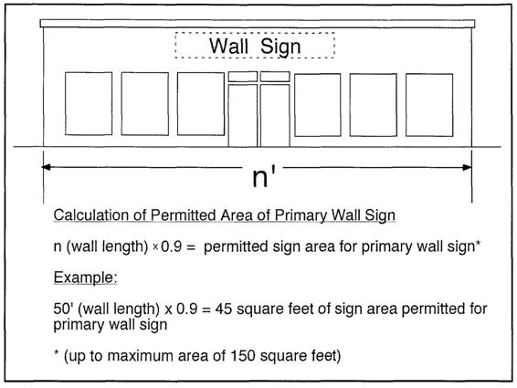 One primary wall sign is permitted on the wall with the primary public entrance to the business. For businesses with more than one entrance, only one entrance shall be counted as the primary entrance.