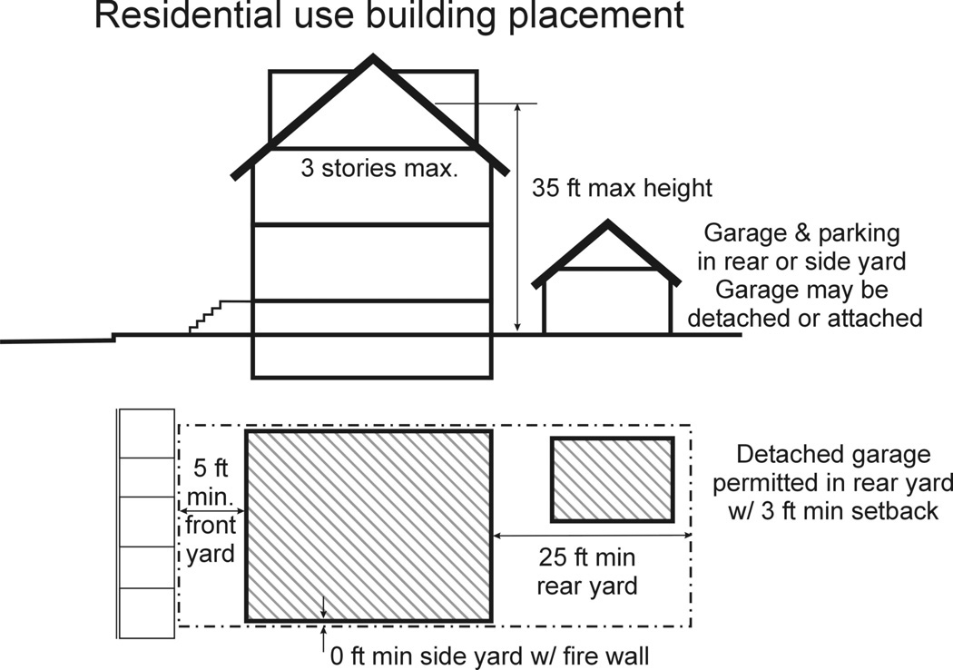 Setback Requirements. The required residential building setbacks promote streetscapes that are consistent with the desired character of the CBD and reinforce a pedestrian orientation and built-up streetscape. The setback requirements for areas that abut single-family residential zones promote development that will maintain light, air, and the potential for privacy for adjacent residential zones.
