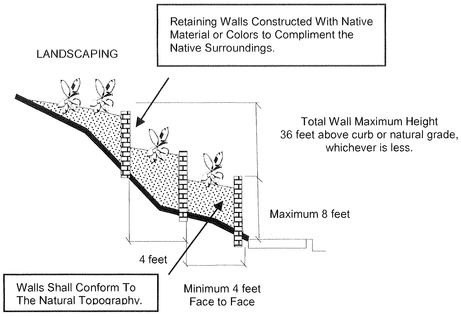 Walls should conform to the topography of the site.