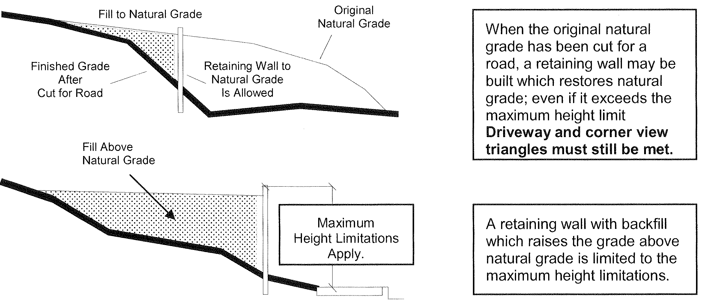 Location and dimensions of proposed retaining wall; and