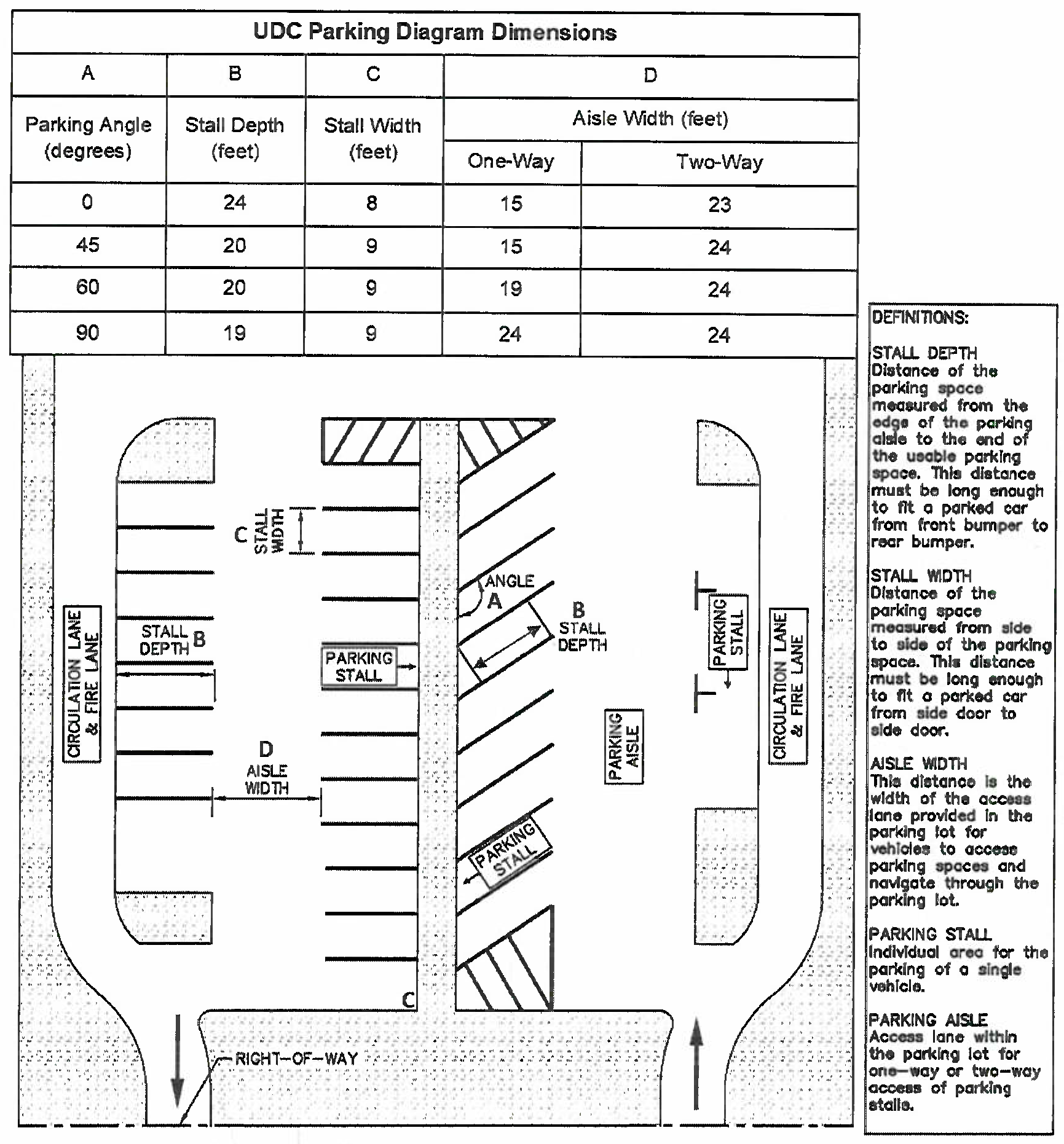 Implement construction standards for surfacing materials, design criteria for stall dimensions, approach widths, and locations to ensure efficiency, usability and a reasonable life expectancy for parking facilities.