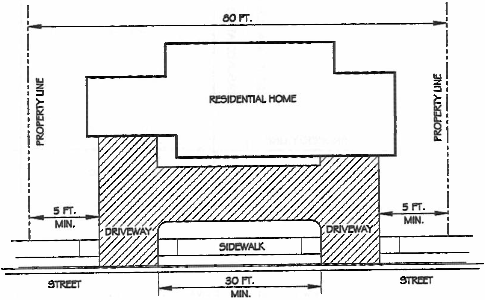 No more than 50 percent of the required front yard setback may be used for off-street parking or for a driveway providing access to a garage, carport or parking area located behind the front yard setback. This subsection shall not preclude construction of circular drives in accordance with subsection 5.2.11.F(4).