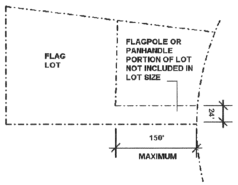 The depth of the flagpole or panhandle shall not exceed 150 feet as measured from the adjacent public or private street right-of-way; and