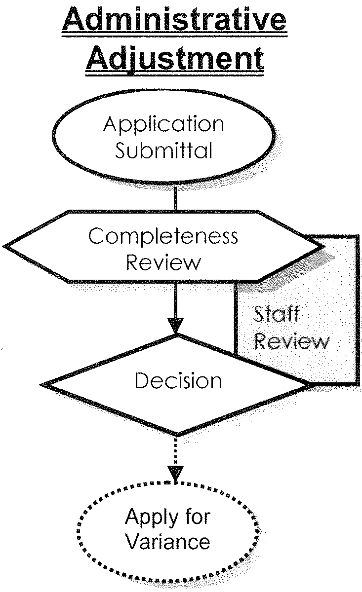 8.13.1 Purposes. Administrative adjustments are minor variances, up to a maximum of ten percent, from otherwise applicable development standards where development is proposed that would be: