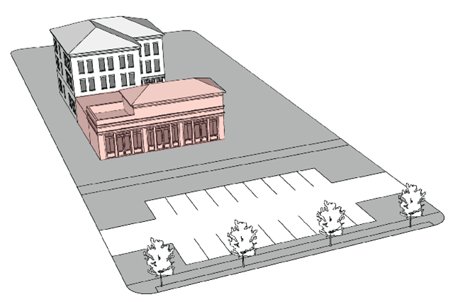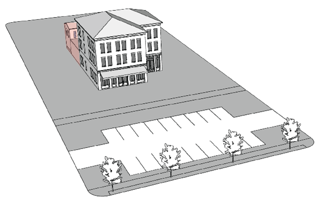 Side: Addition. Side additions are not allowed because the extension increases the width of the building not in the build-to-zone.