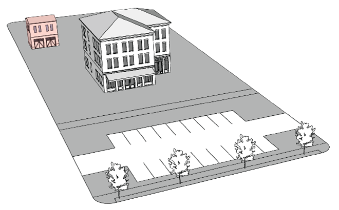Rear: New Building. New Buildings located outside of the build-to-zone are not allowed until the frontage buildout has been met.