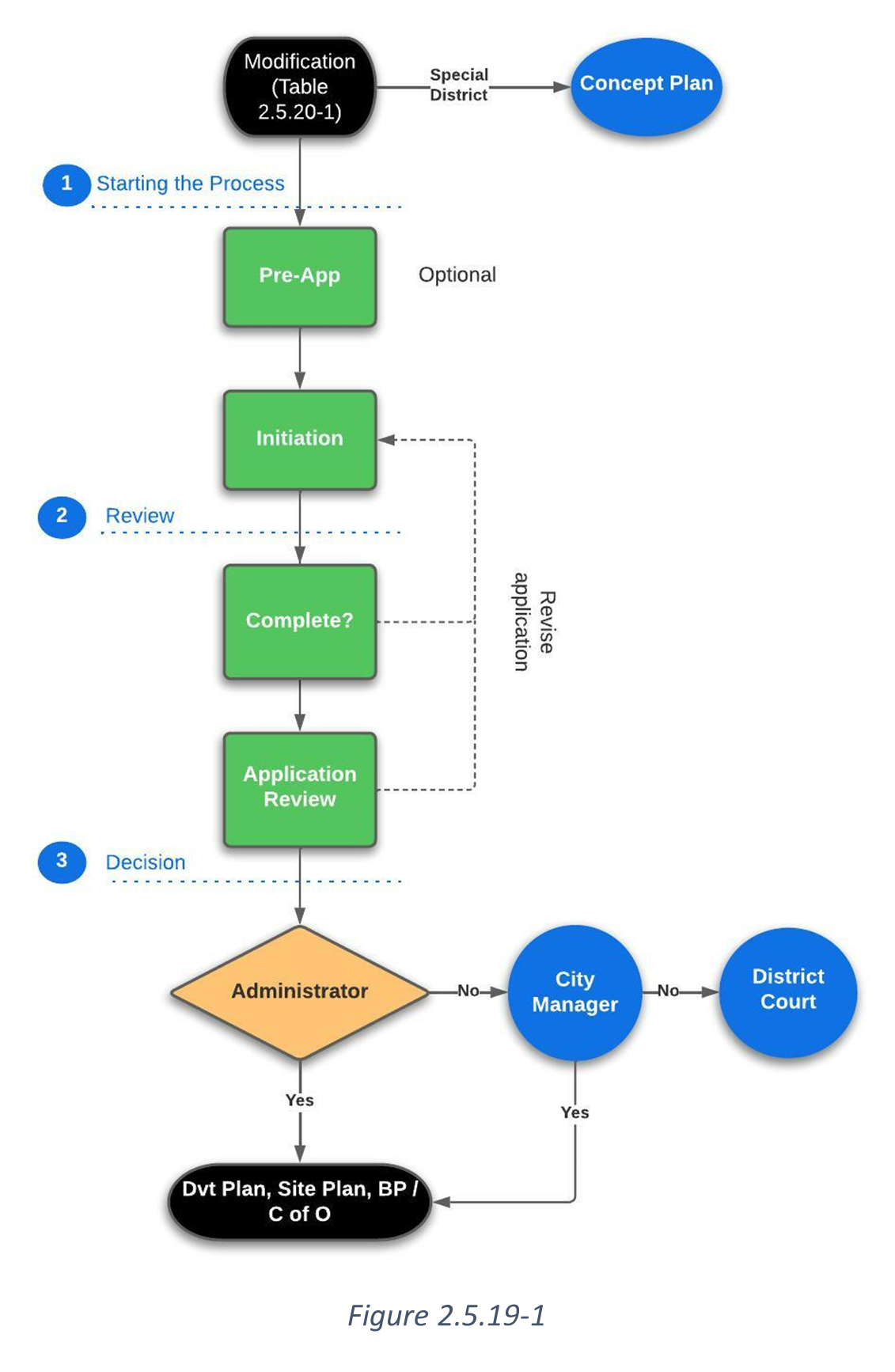 APPLICATION REVIEW: All complete applications for an Administrative Modification shall be reviewed by the Administrator based on the requirements in this Ordinance or any approved concept, development, or Site Plans as applicable. See Section 2.4.5.