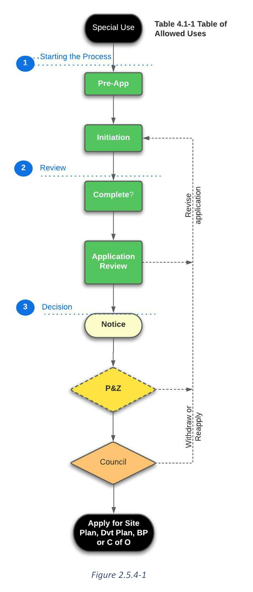 2.4.1 Applicability. This section describes the procedural elements common to all applications. Additional procedures that apply to specific applications are provided in Section 2.5, Specific Review Procedures. Generally, the procedures for all applications have the common elements described in Table 2.4-1 below: