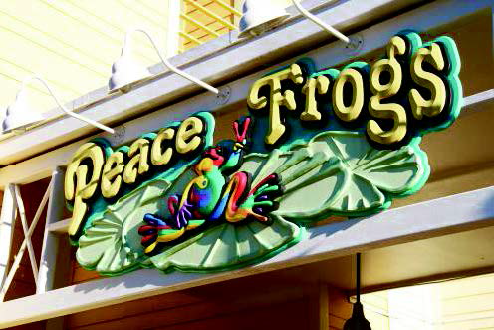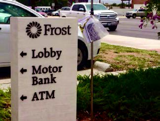 Signs should be professionally constructed using high quality materials such as metal, stone, wood, or brass-plated material. Exposed neon signs may be permitted with a Special Sign Permit.