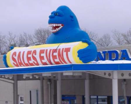 Definition. Any sign enlarged or inflated by air or moving gas and is located on the ground, a building, or similar structure and is with or without copy or other graphic(s). Inflatable signs shall be securely anchored or attached to prevent dislocation or encroachment onto adjacent property or public rights-of-way or easements. See Illustrations 8.3.5-1 and 8.3.5-2.
