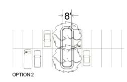 A minimum of one (1) 2-inch caliper, large species tree per 30 linear feet of street frontage or every ten (10) parking spaces, whichever provides the most trees, shall be planted with this option.
