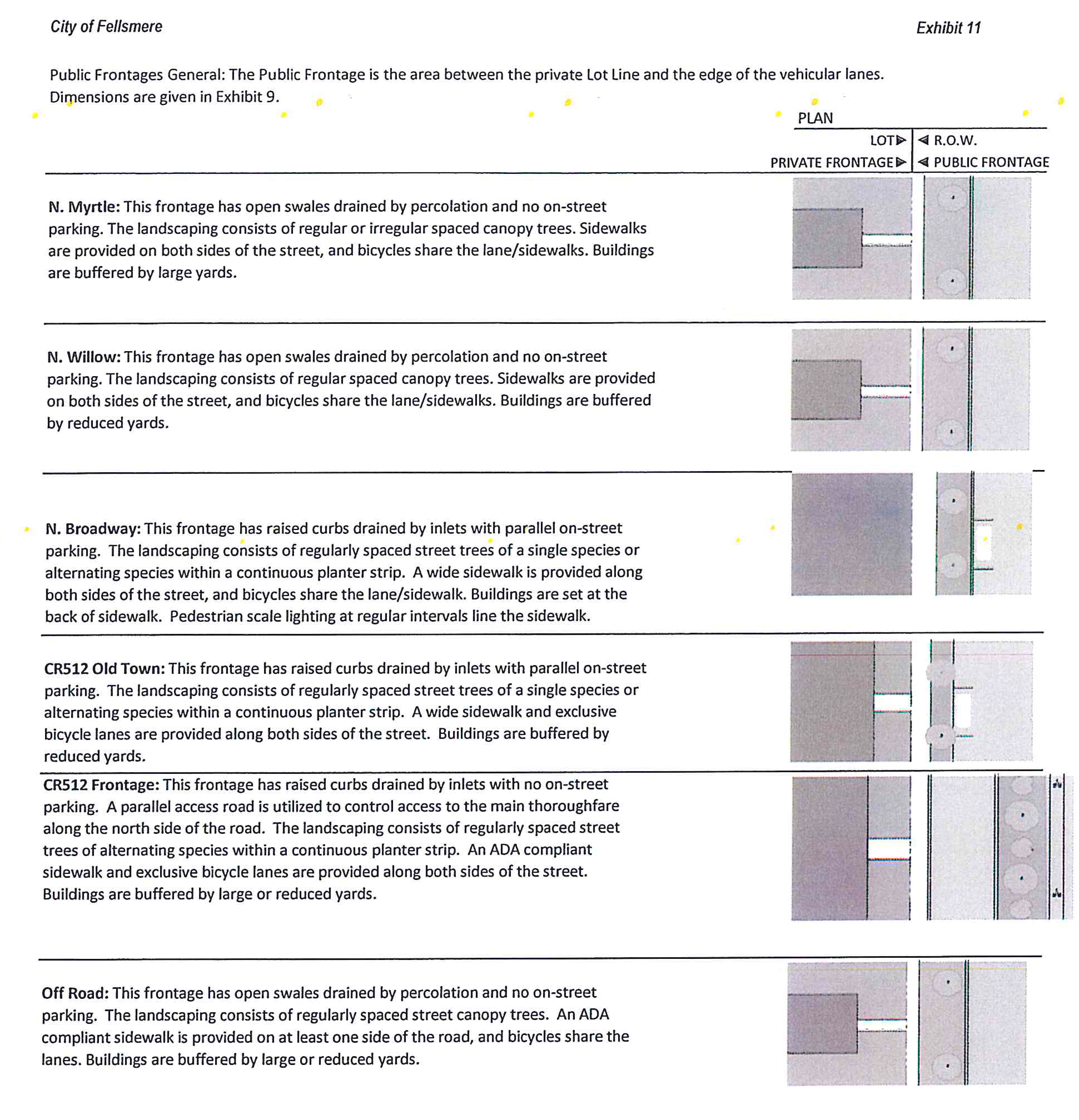 Public frontage and thoroughfare standards. Figure 17 provides a graphical representation of the public frontages and thoroughfare standards.