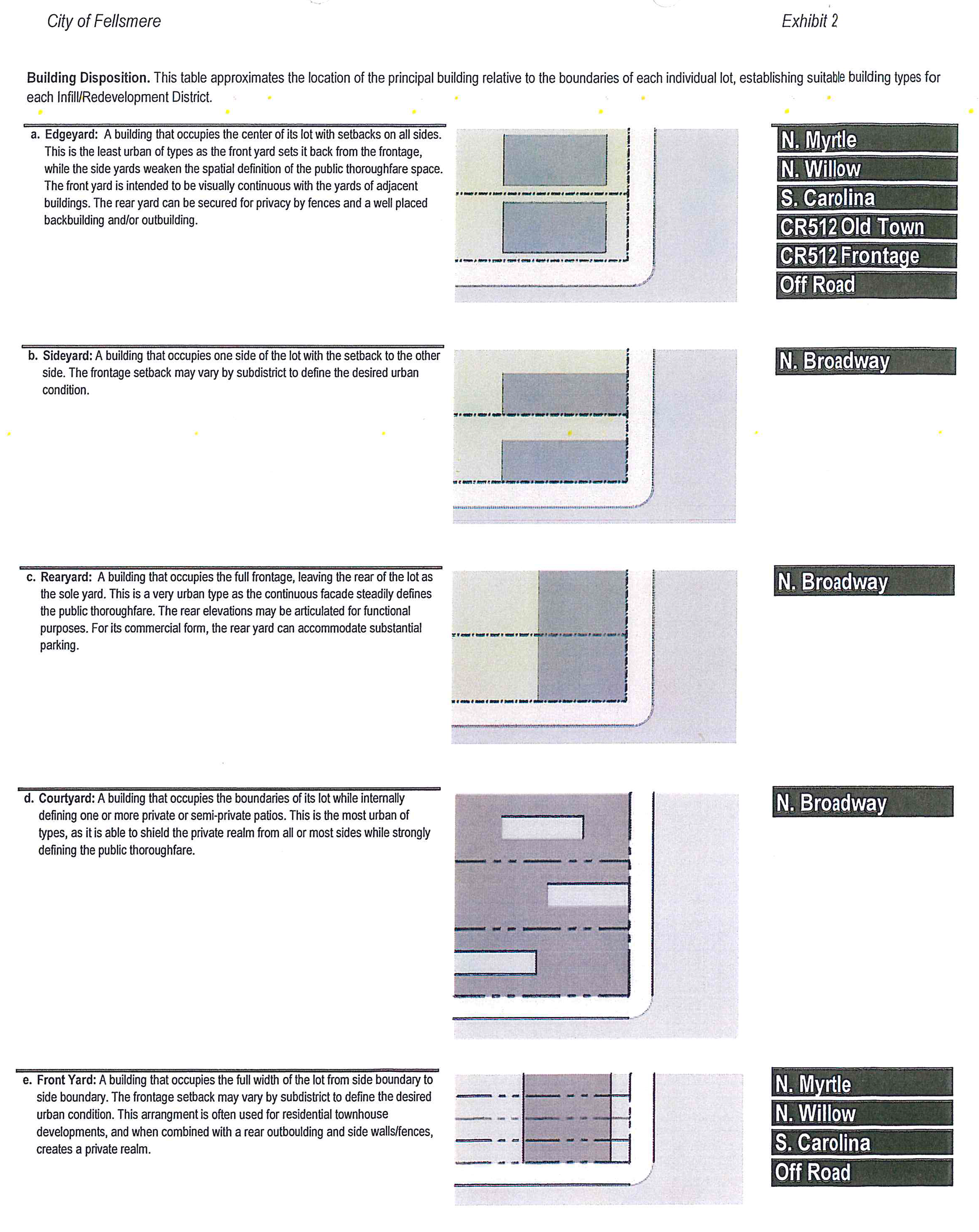 The civic space shall include within the front yard, or within the C.R. 512 right-of-way by minor relief, as determined by the city as part of the site plan approval, a minimum of 150 square feet plaza as defined in exhibit 10.