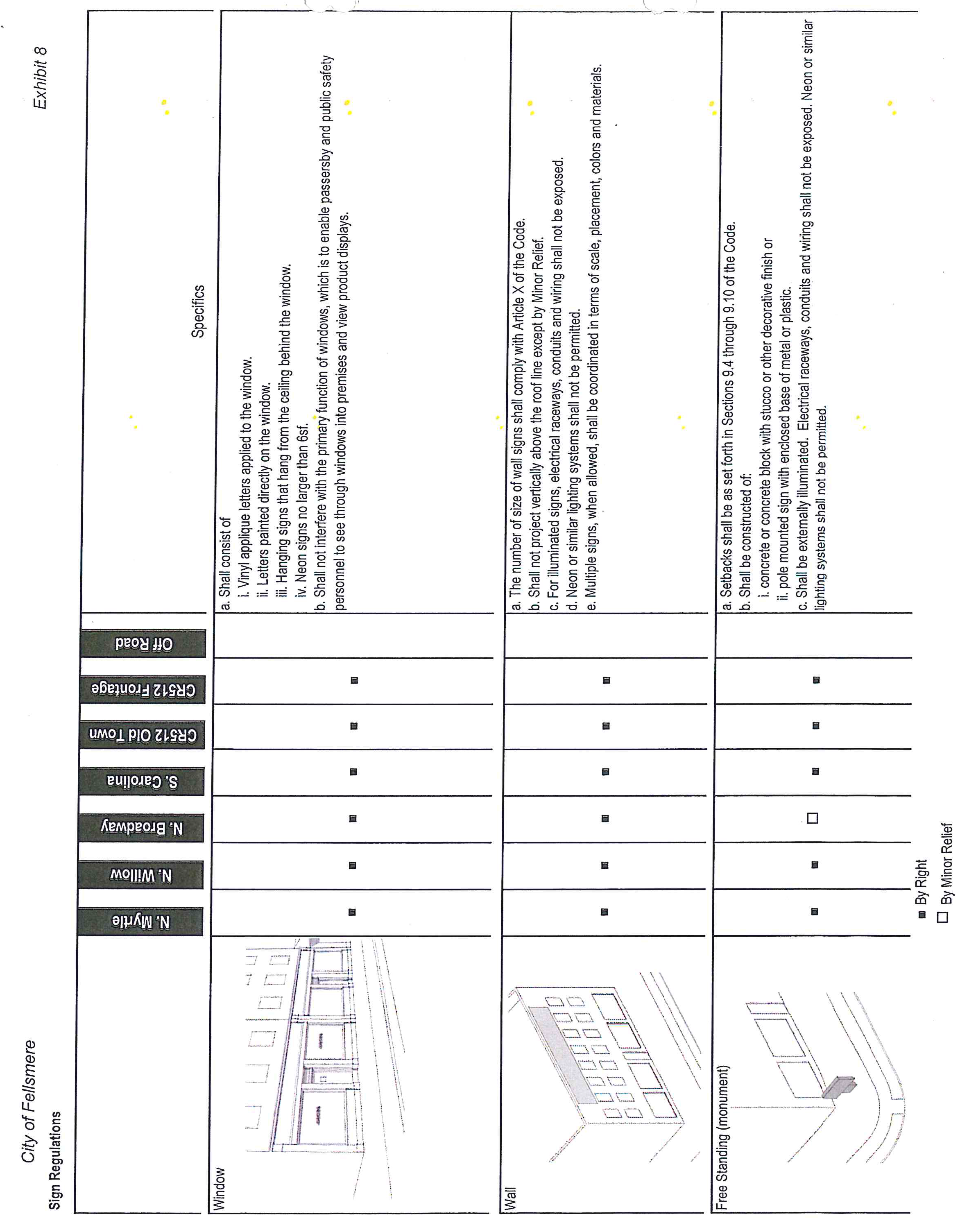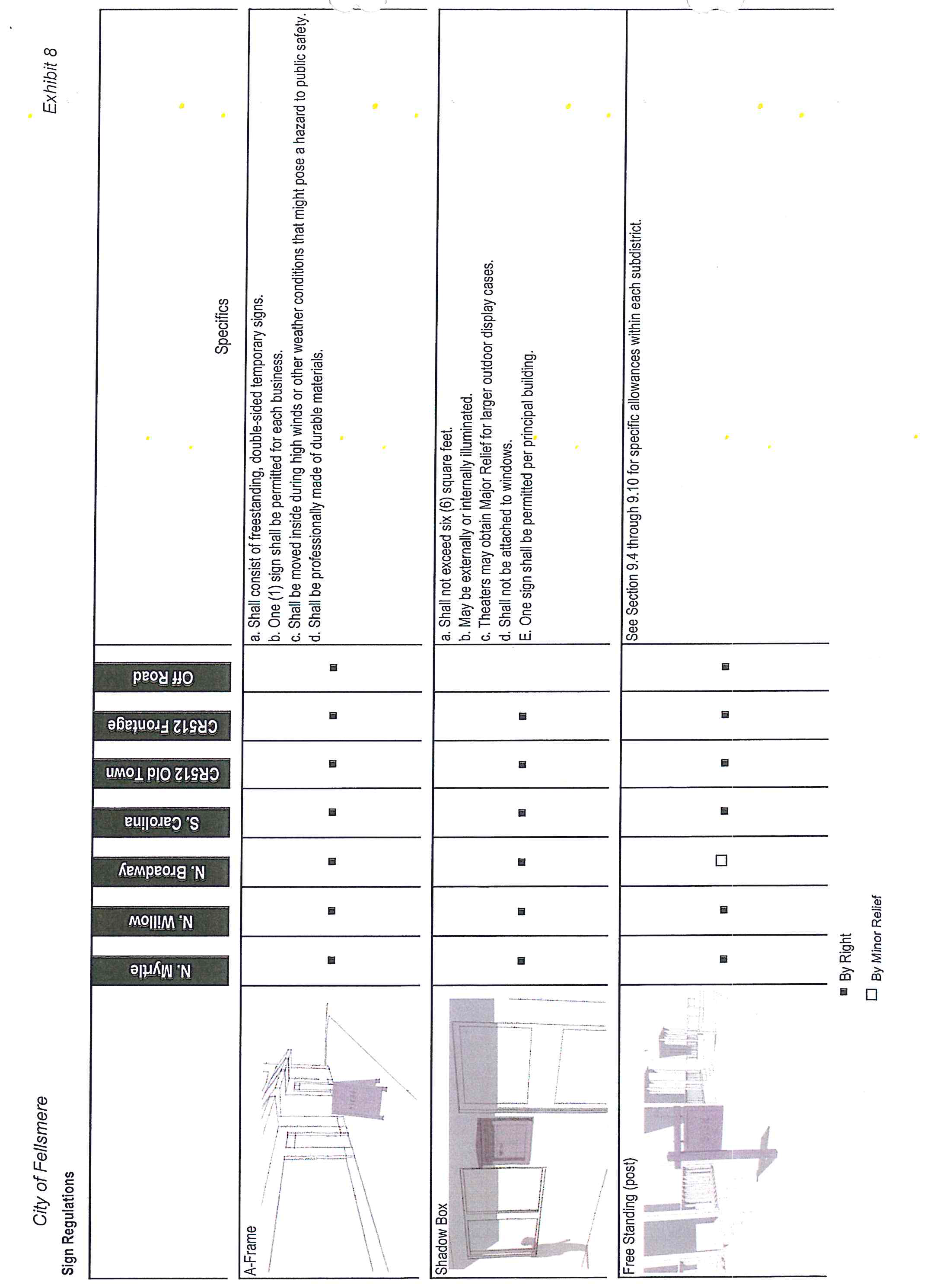 No more than one freestanding sign shall be allowed unless the property contains at least 250 feet of frontage along N. Myrtle in which case two freestanding signs may be allowed.