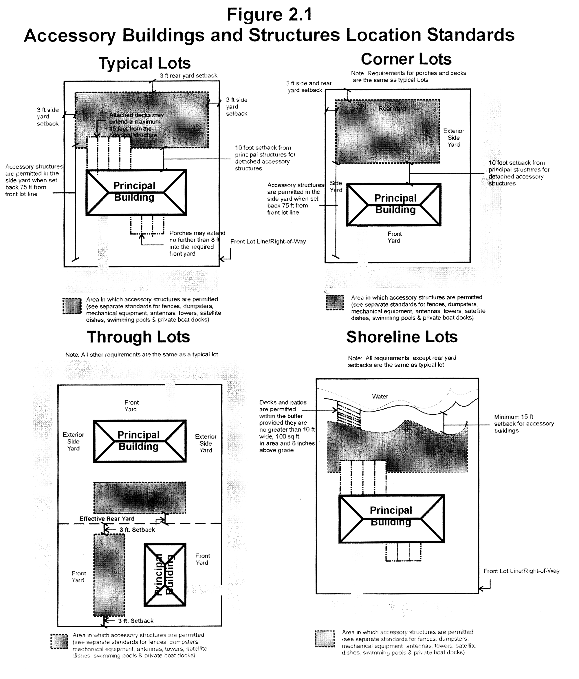 (See Figure 2.1 Accessory Buildings and Structures Location Standards.)