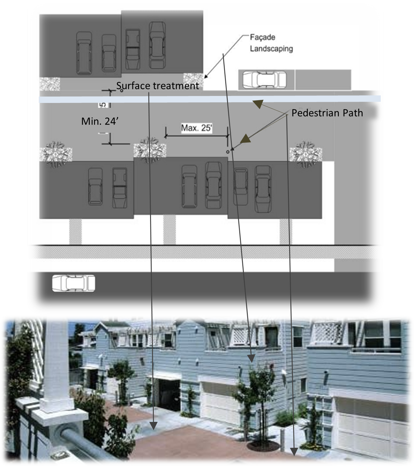 Where practical, subject multi-family land uses adjacent to commercial land use shall provide an access road between the multi-family development and the commercial parking area so as to promote internal circulation between land uses.