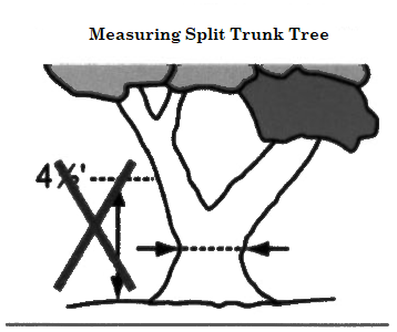 Split-trunk tree—When the trunk branches or splits less than four and one-half (4½) feet from the ground, measure the smallest diameter below the lowest branch.