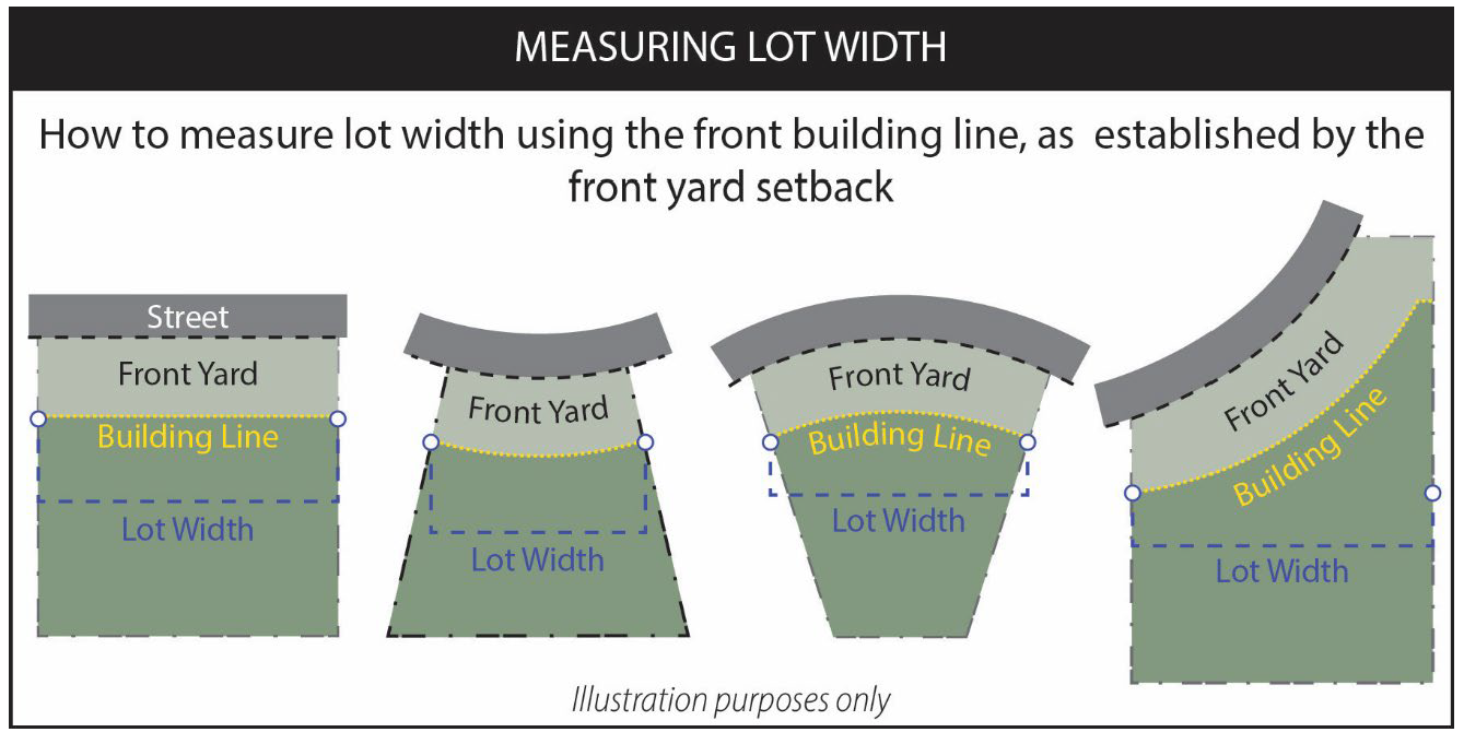 Measurement. Lot width shall be measured as the distance between the side lot lines measured along the front building line. In the case of a lot having more than one required front yard, the lot width shall be measured along the building line associated with the shortest front lot line.