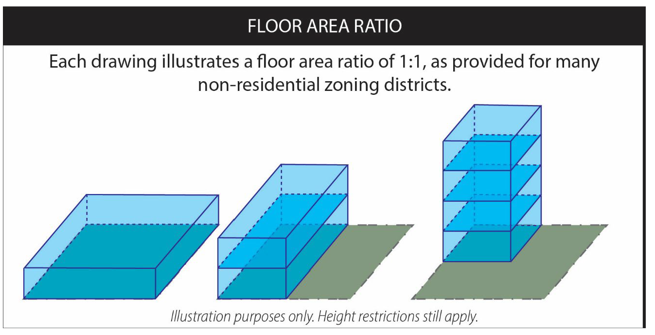 Measurement. Floor area refers to the total of the horizontal area of each floor, measured from the outside face of the building walls. Floor area ratio (FAR) refers to the ratio of the total floor area of the main and all accessory buildings on a lot to the area of the lot.