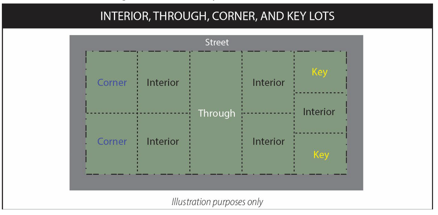 Corner lots. For lots with frontage on two intersecting streets, a front yard shall be provided along the shorter of the two street lines; provided, however, that, on key lots in residential districts platted after January 9, 1975, both street exposures shall be treated as front yards.
