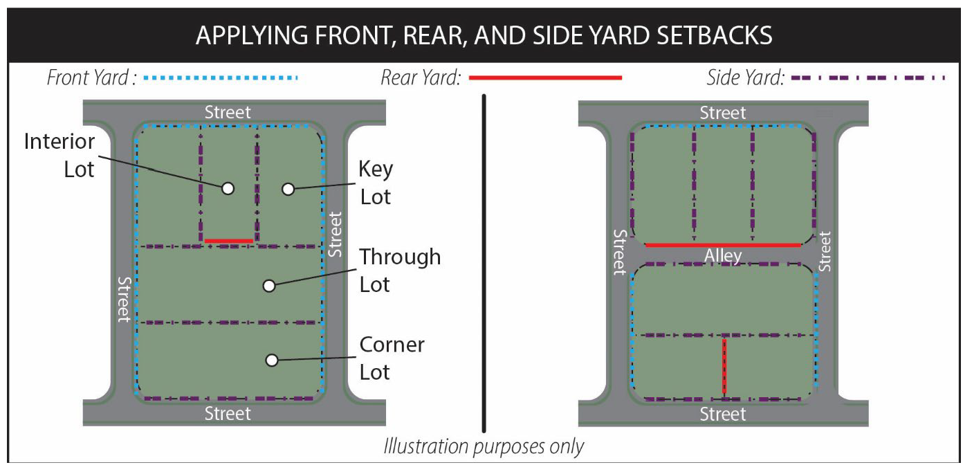 A minimum 30-foot front yard with no parking allowed in the minimum front yard; or