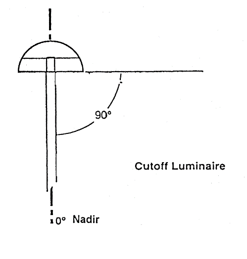 Illustration of cutoff angle depicts nadir and required degree of cutoff.