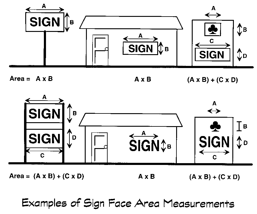 The area of a sign face shall be computed as the area within the smallest rectangle enclosing the limits of a sign face, or the combination of the areas of all such rectangles delimiting each sign face module, together with any frame or material, texture, or color forming an integral part of the sign face or used to differentiate the sign face from the structure upon which it is placed.