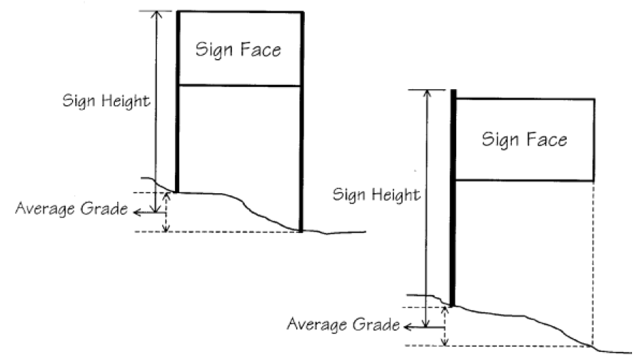 Sign Height: The vertical distance to the highest point of a sign structure, as measured from the grade at the base of the structure or directly below a projecting structure.