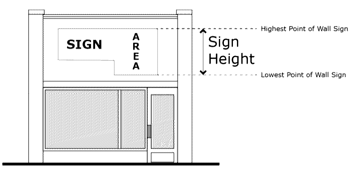 Height, wall sign means the greatest vertical distance measured from the highest point of the wall sign to the lowest point of the wall sign.