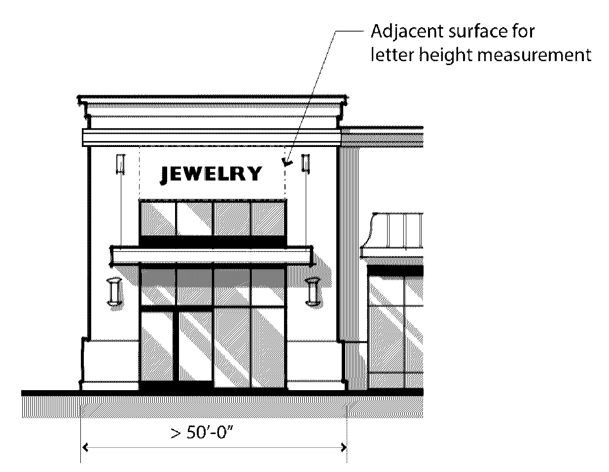 Width means the measurement of a sign, base of a sign, building, or façade at its full extent from side to side.