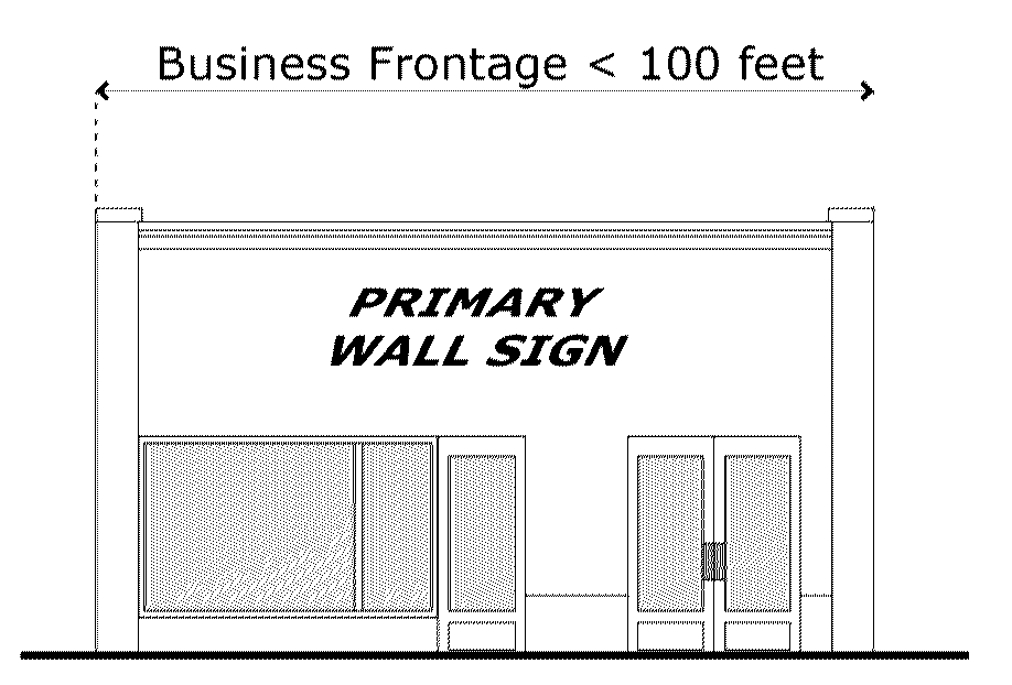 Wall sign, primary means of multiple wall signs, the wall sign with the largest sign area per building frontage.