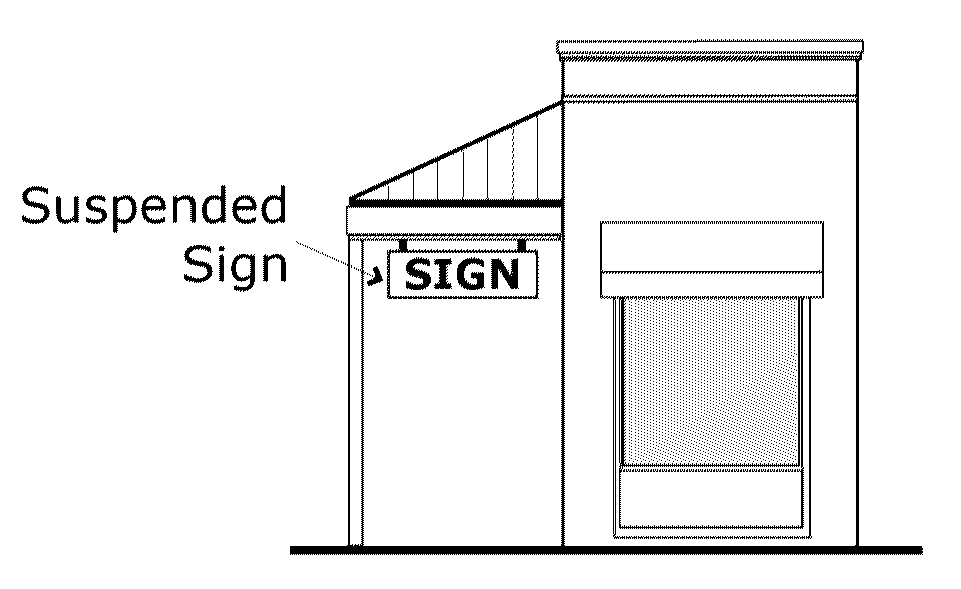 Suspended sign means a sign that is suspended from the underside of an eave, canopy, awning, arcade, or other covered walkway.
