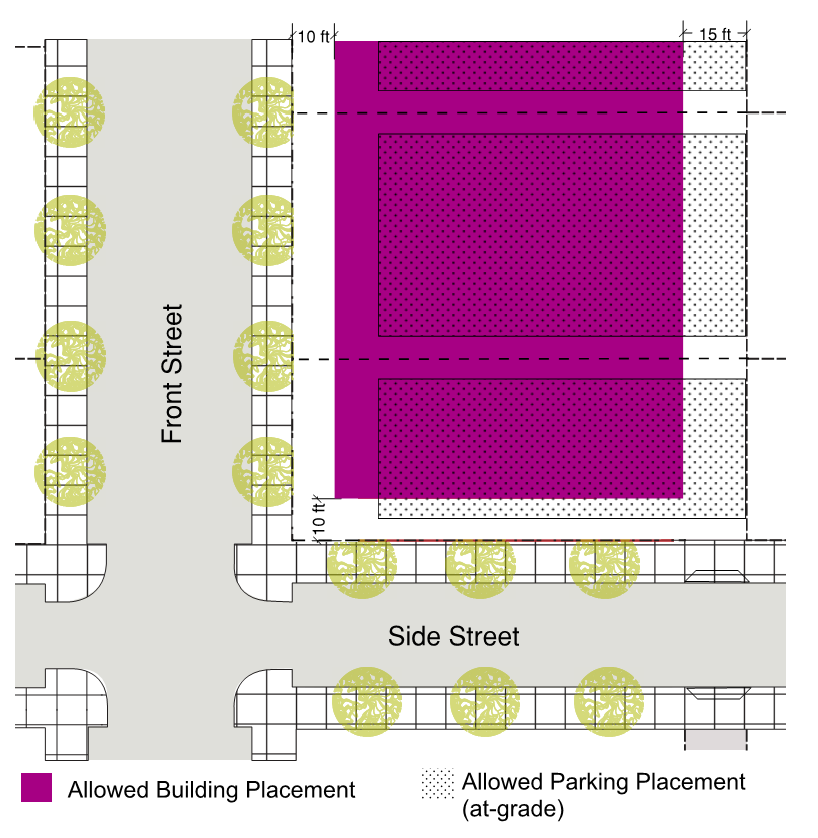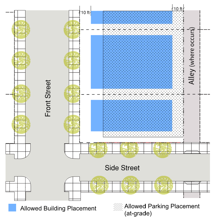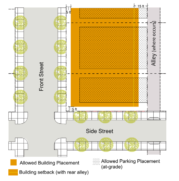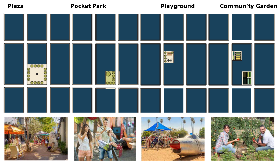 Common open spaces and public open spaces play an important role in place-making. Their standards must be considered alongside building form, building types, frontage types, and thoroughfares in creating urban environments. The diverse palette of common open spaces, parks and other publicly accessible open spaces are assigned to one or more downtown zones.