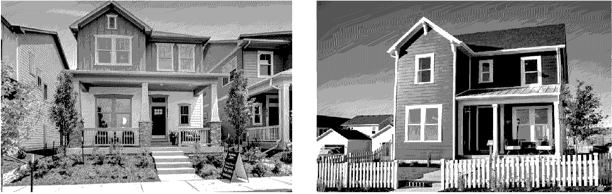Building colors may be composed of contrasting hues and tones, with individual building elements or forms emphasized through use of an accent color. Strong, saturated hues are often used to play off neutral hues.