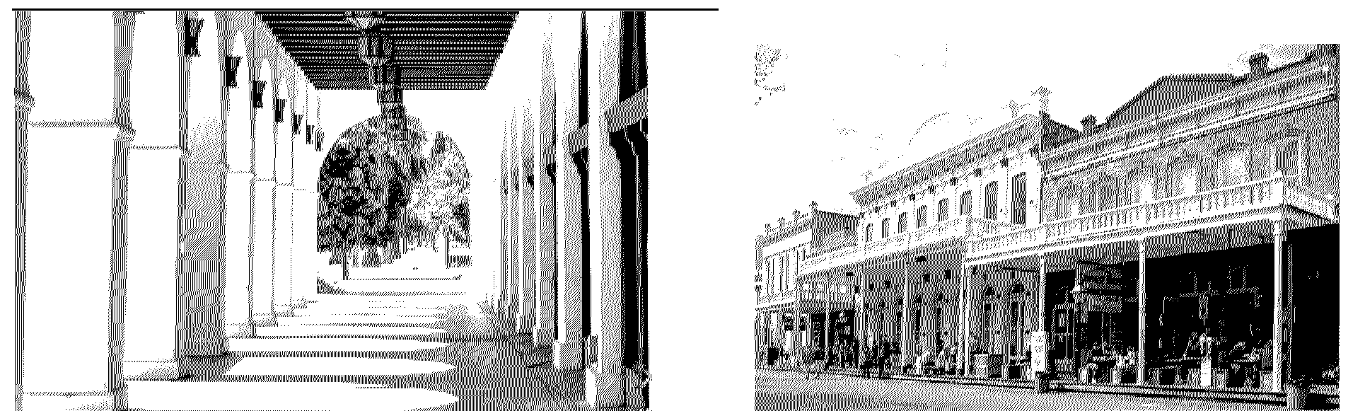 Both formal and informal arrangements of window and door openings are used. Arched openings are used individually and in sequence as arcades.