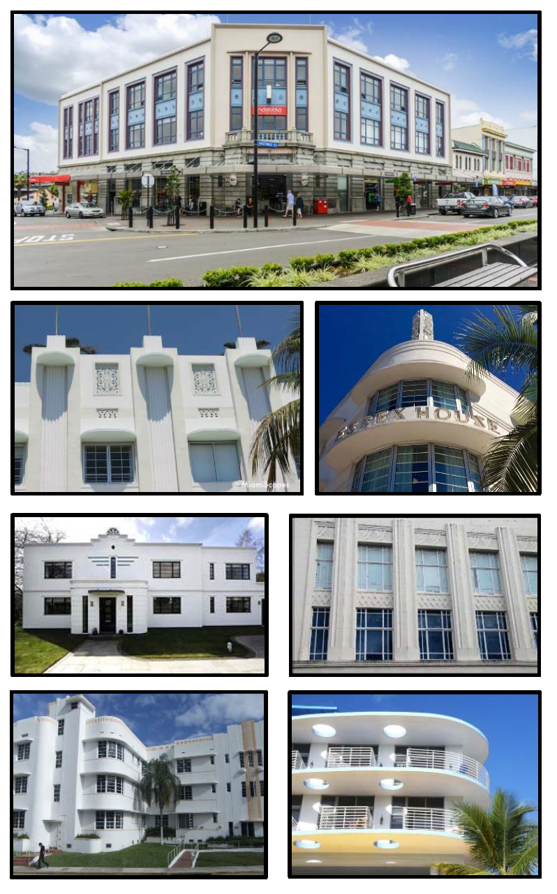 Art Deco (1925-1950). Art Deco and its related styles (Streamline Moderne, Moderne, etc.) emerged as shifts in architectural and commercial fashion between the First and Second World Wars. They were inspired by changes in machine technology and popular taste. These styles were applied widely to commercial, civic, mixed-use, and residential buildings.