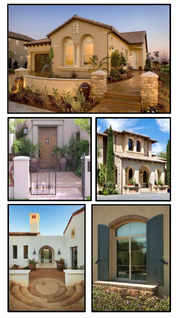 Spanish Mission Revival/Mediterranean Style (1915-1935). Spanish Mission Revival and Mediterranean styles (and their sub-styles such as Spanish Colonial Revival) were period revivals that became popular in California beginning in the 1920s. The historic heritage of the California Missions and previous Spanish presence, the exotic imagery of Spain and Mexico in movies, and California's climate being likened to that of the Mediterranean were sources of inspiration. These styles were applied widely to commercial, civic, mixed-use, and residential buildings.